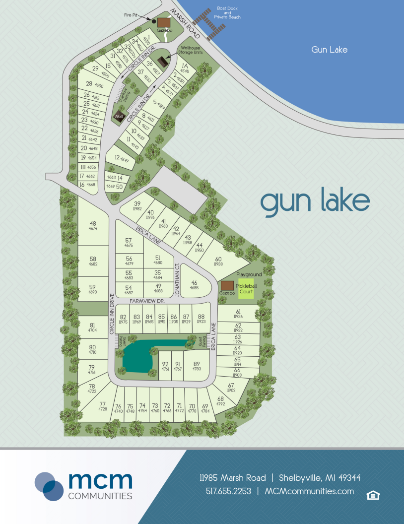 Located in beautiful Southwest Michigan, Gun Lake Manufactured Home Community is a peaceful lakeside oasis and is like living where you vacation! US 131 and other nearby attractions including Gun Lake Casino, Gun Lake Park and Yankee Springs State Recreation Area are all a short drive away. Gun Lake Manufactured Home Community offers the serenity of rural living with the convenience of easy access to both the Kalamazoo and Grand Rapids areas. This family-friendly location is proud to offer schooling in the Delton Kellogg School District, Wayland Union Schools and Martin Public Schools.